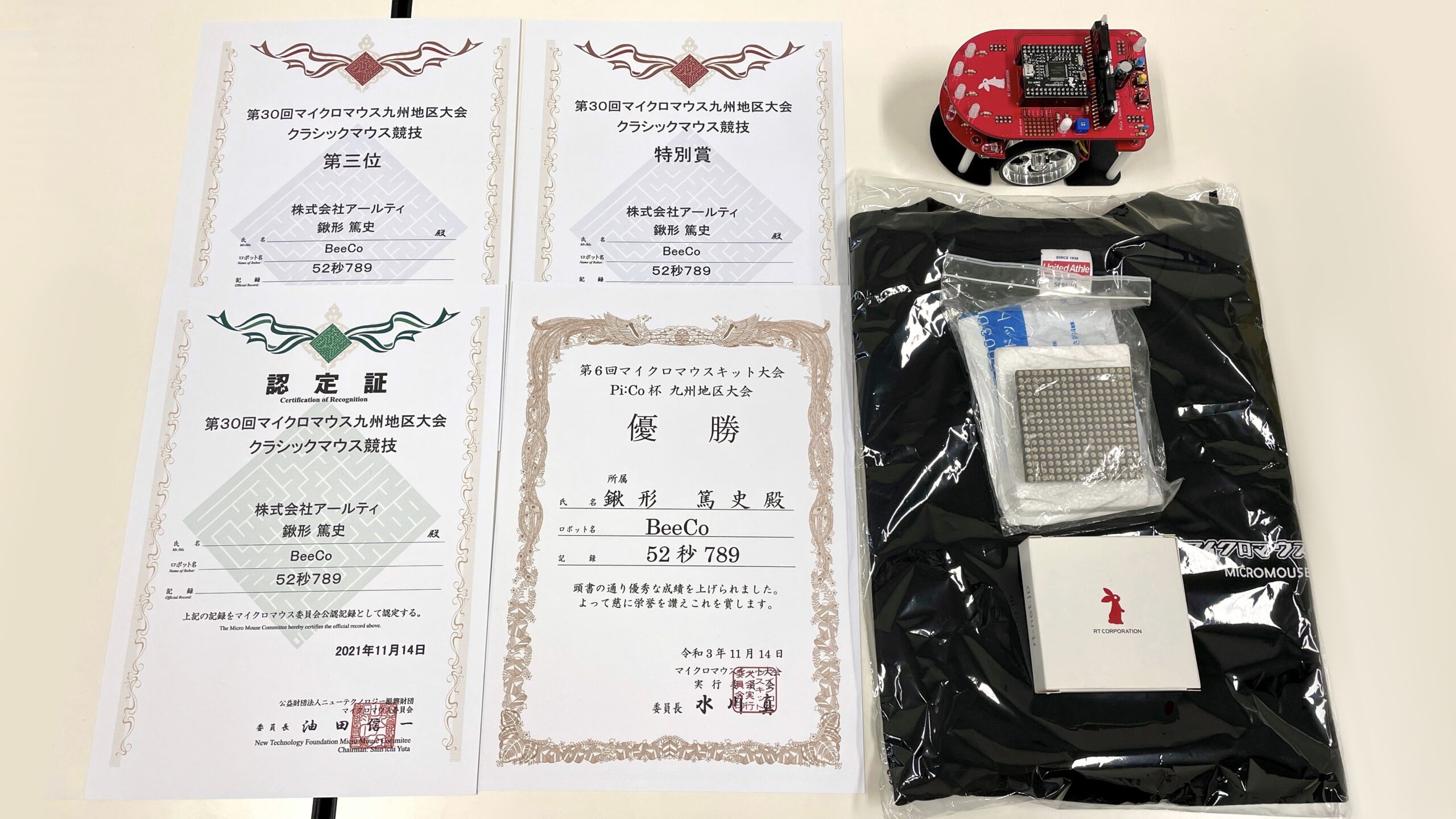 鍬形です。社内研修でマイクロマウスやってます。第30回(2021年)マイクロマウス九州地区大会に研修で使用したPi:Co Classic3で出場しました。研修は社内大会で終えてしまったため公式の大会は初参加になります。