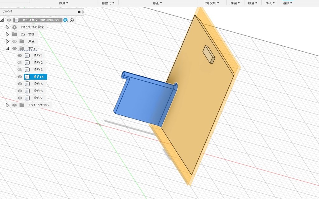 - 「ボディを分割」を使って本体から作業したい部分を分割する。