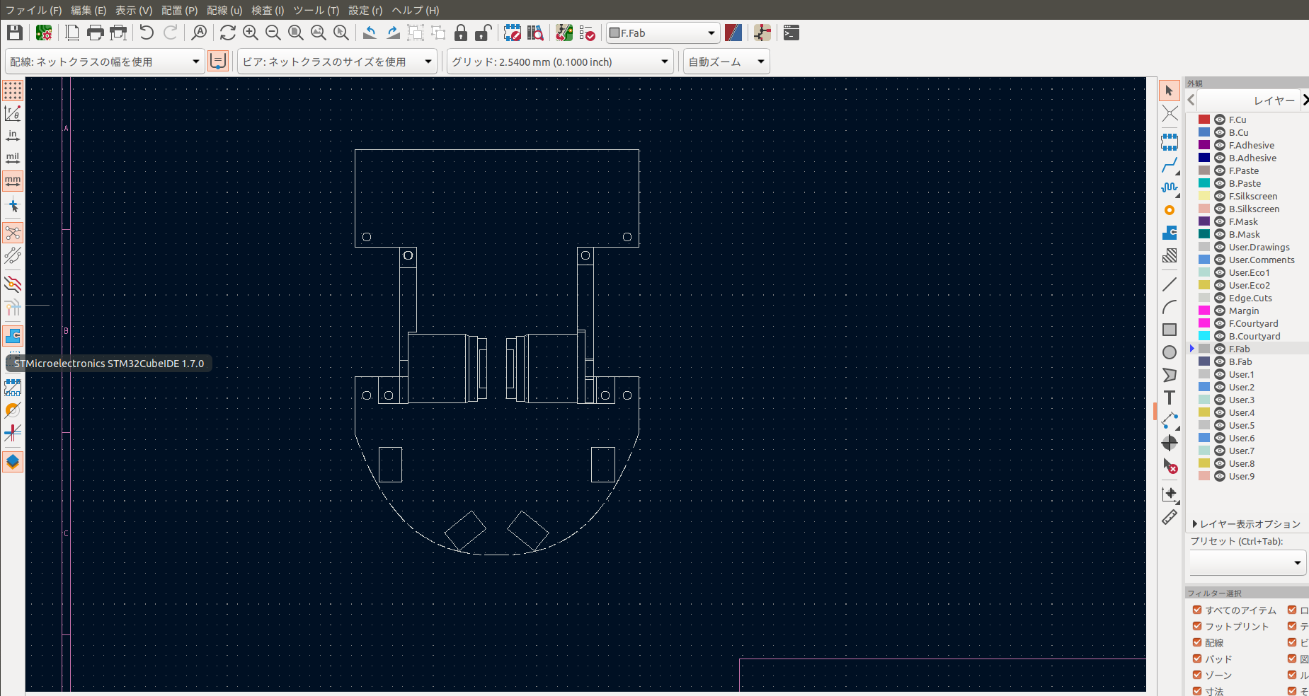 Fusion 360で作成した基板外形や3DモデルをKiCadにインポートする ? マイクロマウス研修(槇原)Part7 を参考にして基板外形を作りました。