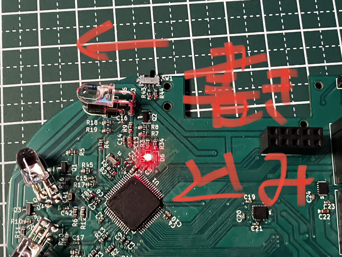 よくあったのがSTMマイコンやモータドライバなどの細く小さいピン同士に余分にはんだが盛られてしまい、それらのピンが繋がってしまうことでした。