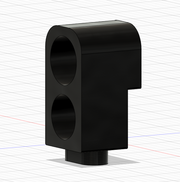 今回はセンサマウンタを設けて距離センサの位置決めを簡単にし、取り付け方によって角度が変わりづらくなるようにします。センサマウンタにはLEDとフォトトランジスタを固定する穴を設けます。センサマウンタの下部には車体(基板)との取り付け位置を決める治具となる突起を設け、車体に穴を明けて位置を固定します。