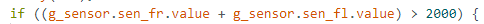 やることは左右の前センサの和が一定以上になったら動き出すようにします。