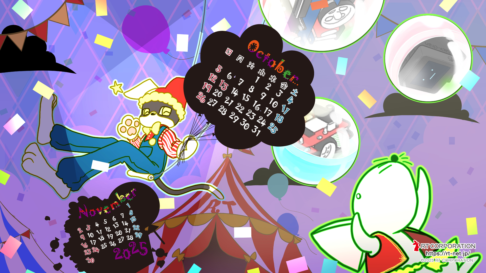 2025年カレンダー壁紙 アールティのマスコットキャラクター「ネコ店長」「マウス係長」などが登場するカレンダー壁紙です。 毎月1日(土日祝の場合はその前の平日)に公開! PCの壁紙やスマホのロック画面などにご利用ください! カレンダー表記なしver.もご用意していますので、お気に入りの壁紙を長くお使いいただくことも可能です。 更新情報はアールティのFacebookとX(旧Twitter)でお知らせしています。 【画像サイズ】 横タイプ:1920×1080 縦タイプ:1080×2340 10月 October 9月 September カレンダーありver. カレンダーありver. 8月 August カレンダーありver. カレンダーありver. 7月 July カレンダーありver. カレンダーありver. 6月 June カレンダーありver. カレンダーありver. 5月 May カレンダーありver. カレンダーありver. 4月 April カレンダーありver. カレンダーありver. 3月 March カレンダーありver. カレンダーありver. 2月 February カレンダーありver. カレンダーありver. 1月 January カレンダーありver. カレンダーありver. 2024年カレンダー壁紙 2023年カレンダー壁紙 2022年カレンダー壁紙 2021年カレンダー壁紙
